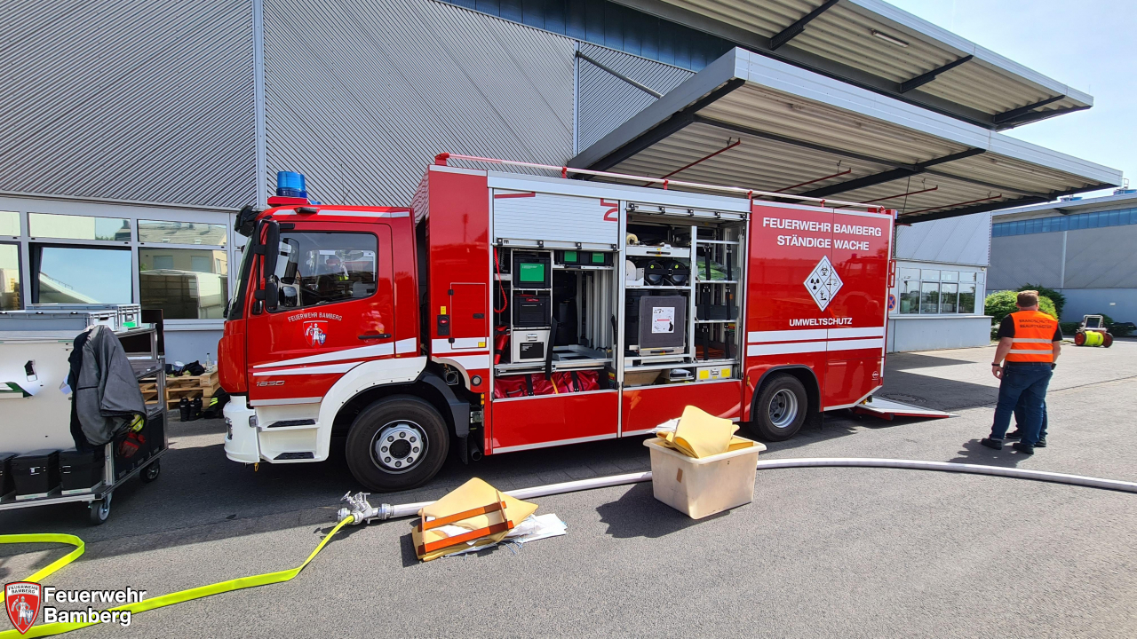 Um abklären zu können, ob es sich um ein Leck oder andere Störung des Betriebes handelte, wurde der Gefahrstoffzug Bamberg alarmiert. Dafür sind diverse Löschgruppen disponiert, um die anfallenden Fachbereiche zu betreuen und die Aufgaben zu bewältigen.