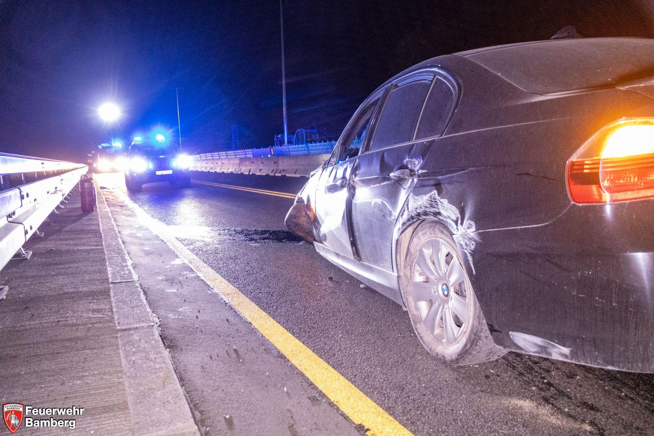 Die Feuerwehr Bamberg wurde in der Nacht auf die Hainbrücke zur Beseitigung von Unfallfolgen alarmiert. Im Baustellenbereich der B22 kollidierte ein Pkw mit der Außenbegrenzung und hinterließ ein Trümmerfeld. Herumliegende Teile und auslaufende Flüssigkeiten waren die Folge. Beide Fahrtrichtungen waren für einige Zeit gesperrt. Der ebenfalls alarmierte Rettungsdienst versorgte bereits den Fahrzeugführer.