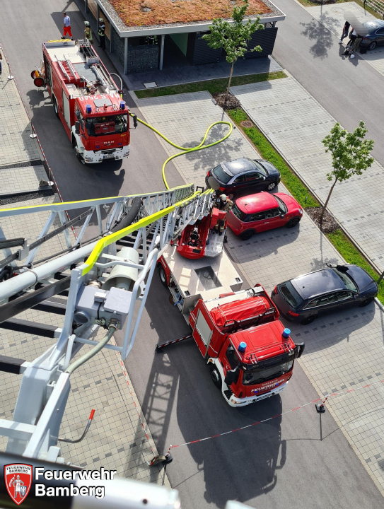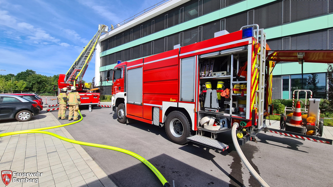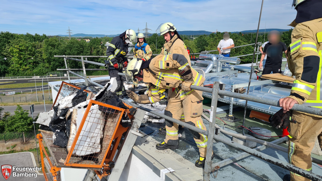 Die Feuerwehr Bamberg wurde am Nachmittag zu einem Dachstuhlbrand in die Kronacher Straße alarmiert. Gleich mehrere Anrufer meldeten sichtbare Flammen und starke Rauchentwicklung auf dem Flachdach eines Firmengebäudes. Bei Eintreffen an der Einsatzstelle war zwar noch deutlich Rauchgeruch wahrnehmbar, die anwesenden Mitarbeiter eines Dachdeckerbetriebes hatten die Flammen jedoch schon wieder unter Kontrolle gebracht und eingedämmt.