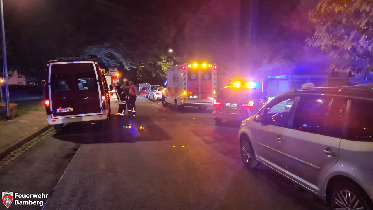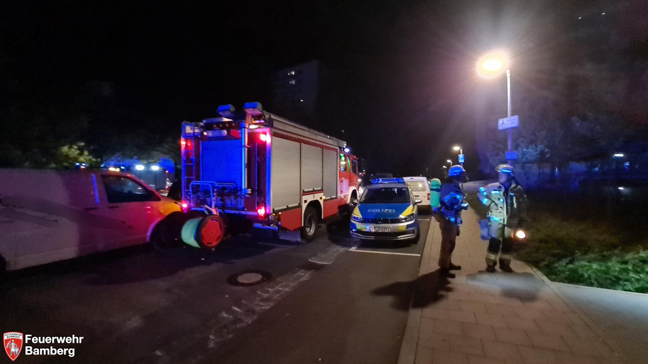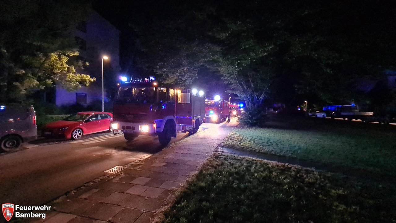 Die Feuerwehr Bamberg wurde in der Nacht zum Pfingstmontag in die Kantstraße zu einem angenommenen Zimmerbrand in einem Hochhaus alarmiert.