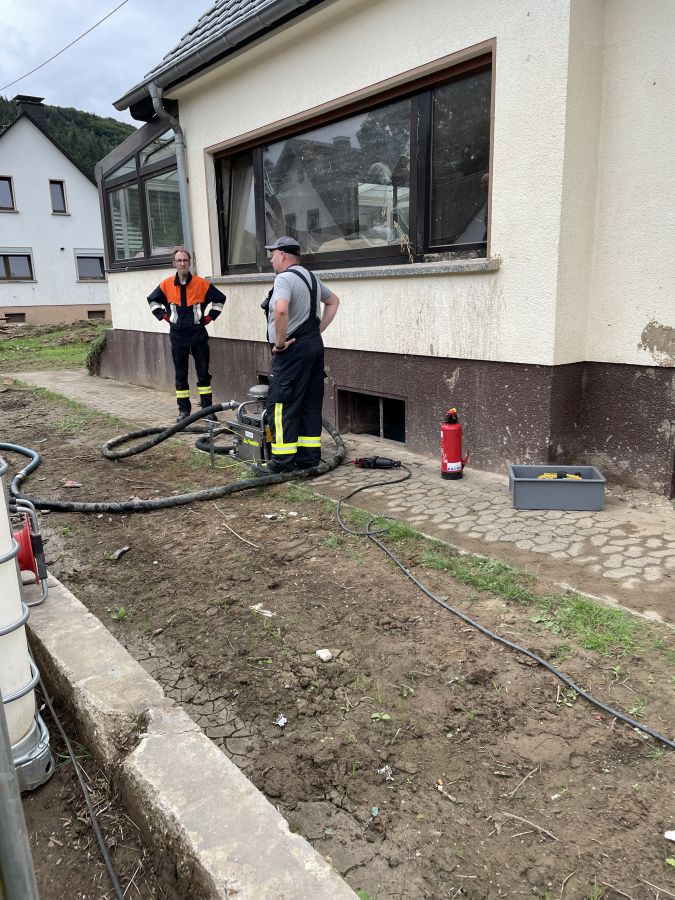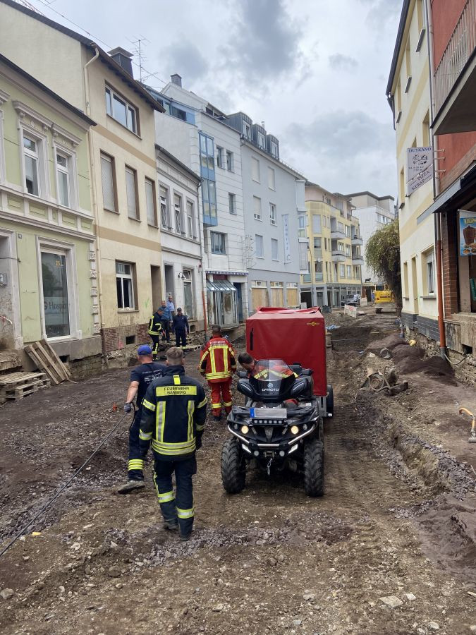 Somit sind mit den „Neulingen“ rund 90 Kameradinnen und Kameraden aus Stadt und Landkreis Bamberg im Einsatzgebiet. 11 verschiedene Feuerwehren sowie die Unterstützungsgruppe – Örtliche Einsatzleitung aus dem Landkreis Bamberg, alle Löschgruppen inkl. der Ständigen Wache aus dem Stadtgebiet, die Bundeswehr, das Technische Hilfswerk, der Arbeiter-Samariter-Bund, die örtlichen Feuerwehren und weitere Hilfsorganisationen, welche sich vorher nicht kannten, verfolgen derzeit das Ziel „Helfen!“ im Gebiet Ahrweiler. So konnten sie gemeinsam auch am Mittwoch rund 70.000 Liter Öl aus Kellern umpumpen und das ein oder andere Haus von Unrat befreien. Der Dank und die Anerkennung vor Ort überwältigt jeden Tag aufs Neue die Einsatzkräfte vor Ort.