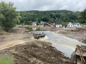 Ab 10:00 Uhr ging es dann an die ersten Einsatzstellen. Die Kräfte sahen nun das ganze Ausmaß der Flutkatastrophe und konnten sich ein persönliches Bild der Lage vor Ort machen: zerstörte Straßen und Brücken, verdreckte öffentliche Plätze und die unbewohnbaren Häuser und Wohnungen.