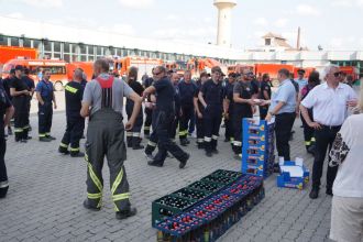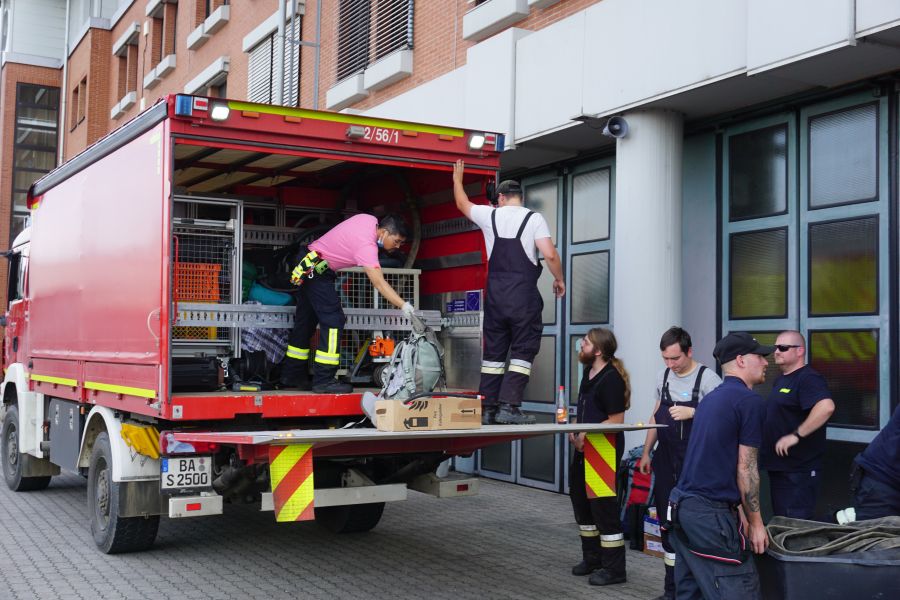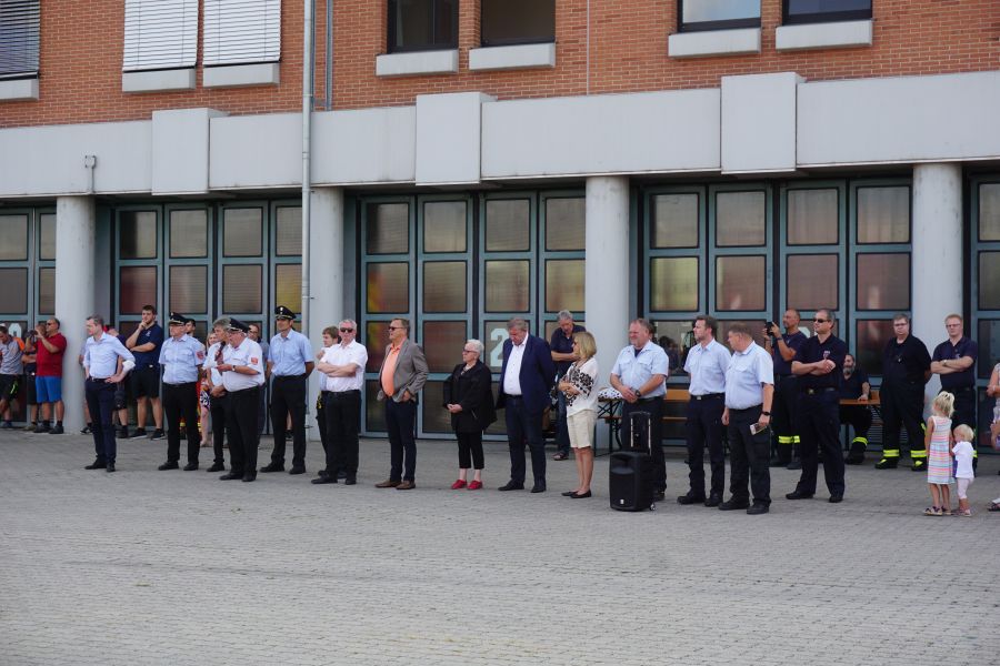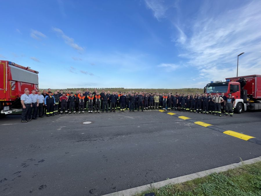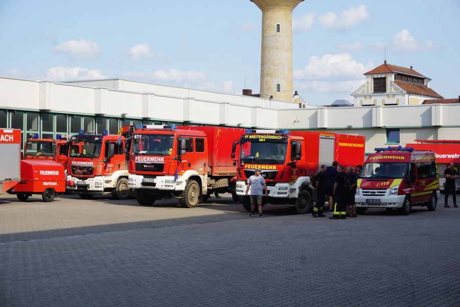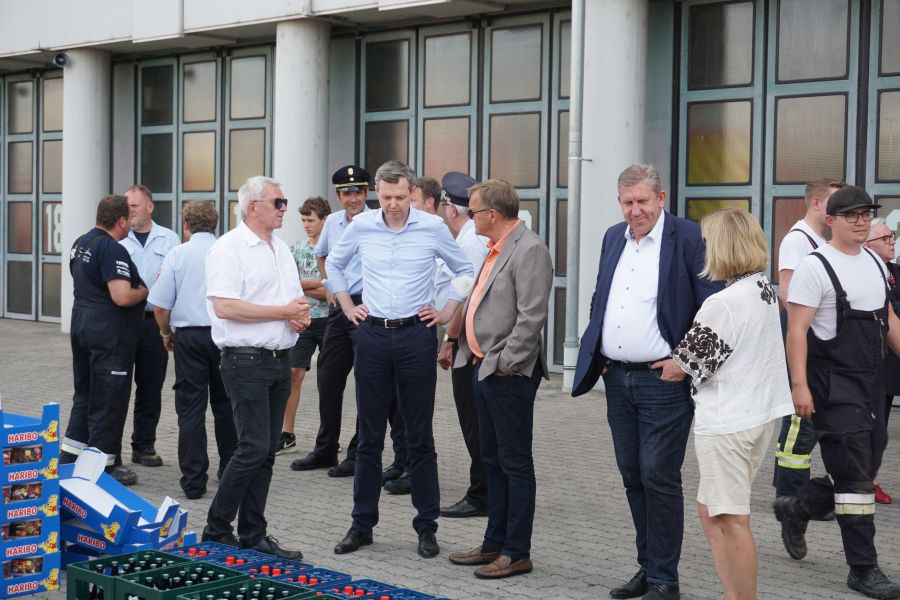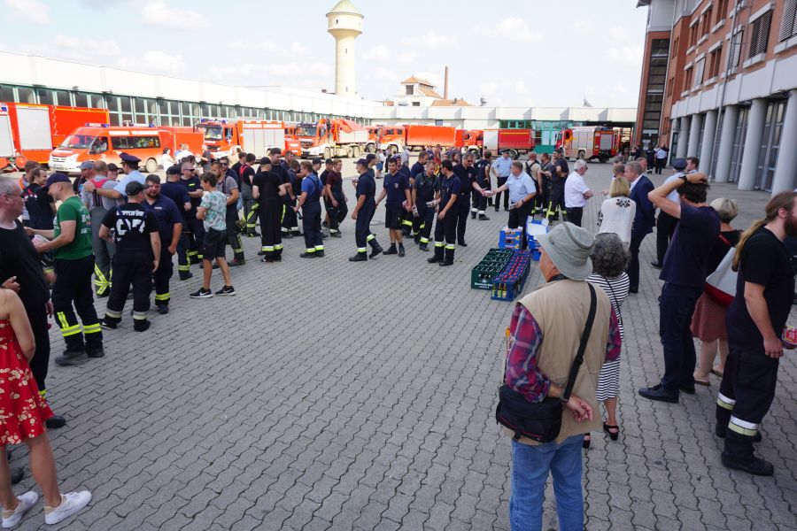 Ab 05:30 Uhr trafen sich die ersten Kräfte auf der Ständigen Wache und empfingen die Kameradinnen und Kameraden aus der Stadt und dem Landkreis. Vor Ort bedankten sich Oberbürgermeister Starke und Landrat Kalb für das hohe Engagement trotz Ferien- und Urlaubszeit. Ebenso SBR Kaiser und KBR Ziegmann, welche noch einmal kurz auf die bevorstehenden Aufgaben eingingen.
