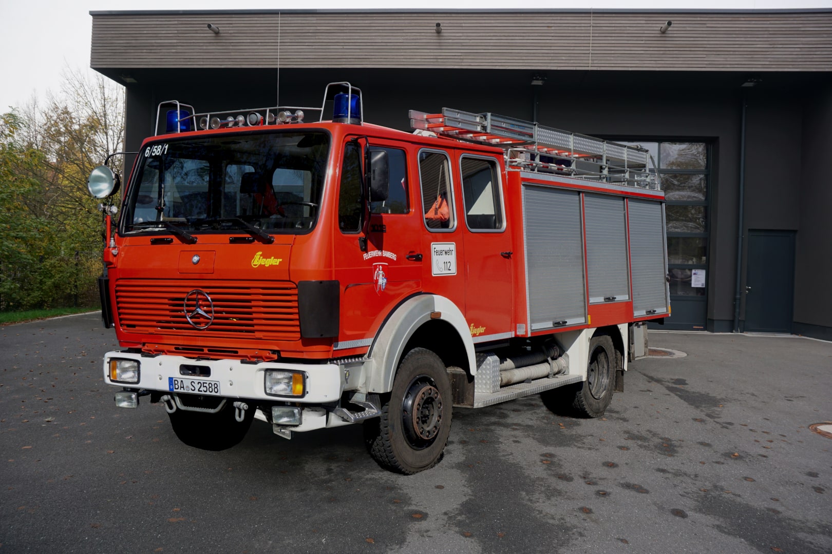 ehem. Katastrophenschutzfahrzeug, daher die Kat.Schutz-Farbe Orange (RAL 2004)