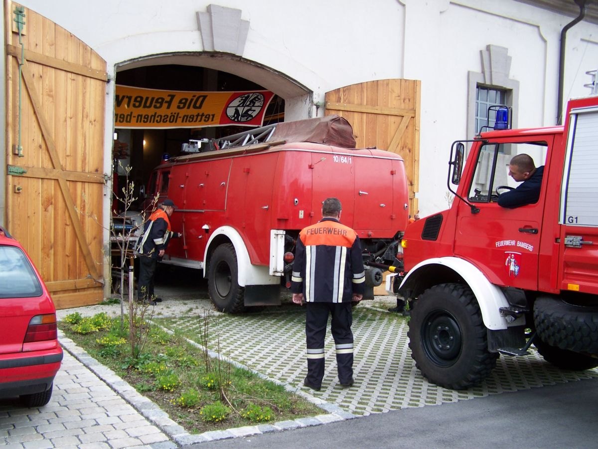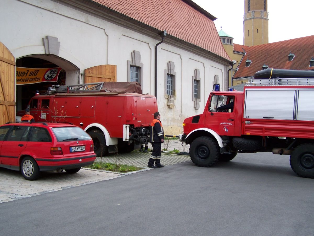 Unter tatkräftiger Mithilfe des RW1 und der Kameraden der Löschgruppen 1 und 3 wurde der alte RKW (Rüstkranwagen) rückwärts aus dem Museum gezogen, auf dem Parkplatz gewendet und dann zur Ständigen Wache - seine letzte Wirkungsstätte - gezogen, wo er bis zur Neubeschaffung des Wechselladers im Jahr 2000 seinen Dienst versehen hat. Dort wird er wieder überholt und fahrbereit gemacht, um zum Oldtimertreffen auf dem Domplatz in Bamberg am 19.06.2010, das im Zuge der Jubiläumsfeierlichkeiten abgehalten wird, der Öffentlichkeit und den interessierten Besuchern vorgestellt zu werden.