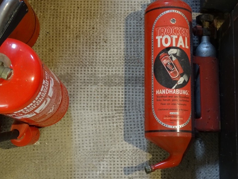 Heutige Feuerlöscher sind sicher zu bedienen und haben einen sehr guten Löscherfolg. Im Museum kann man auch die Geschichte dieser Kleinlöschgeräte nachvollziehen.